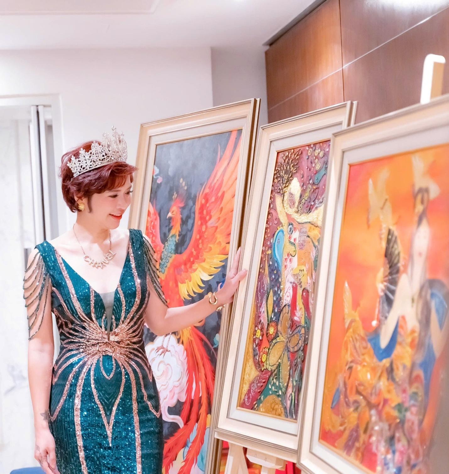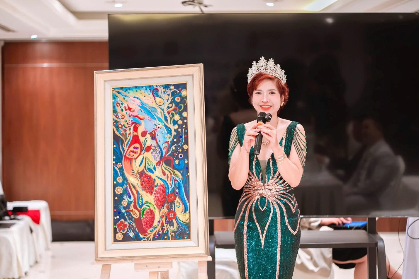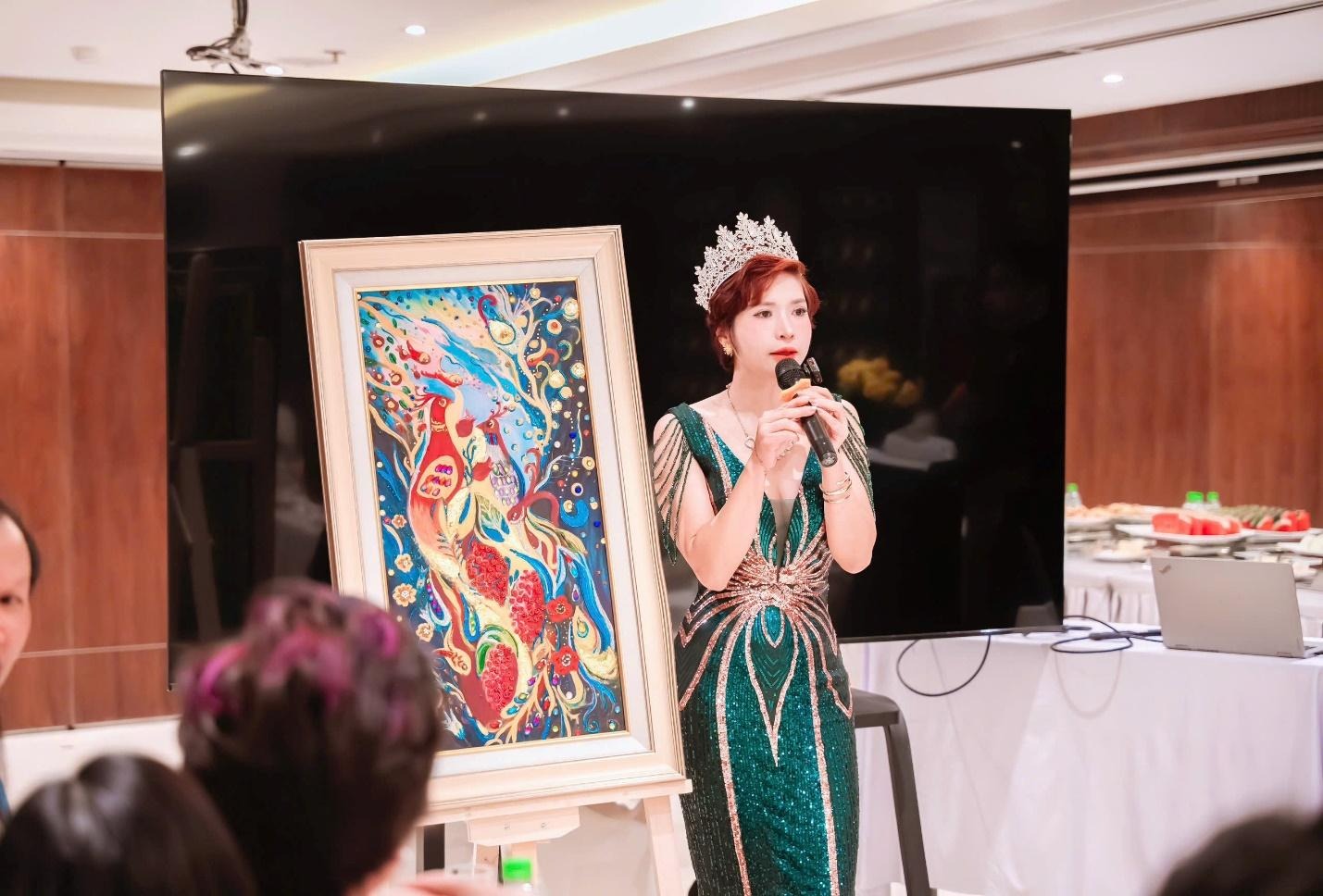 Phóng viên: Vì sao chị lại lựa chọn dòng tranh trang trí, kết hợp đính hạt và dát vàng cho lần trở lại này?